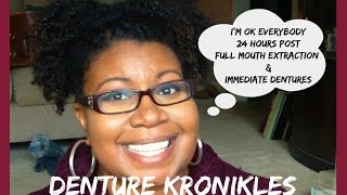 Here's what you can expect during the process. Denture is not fixed in mouth. 12 maxillary teeth were extracted (some badly decayed and some with curved roots) (part 1), followed by 10 mand teeth including a wisdom tooth. Immediate (same day) dentures — best for patients who want their teeth extracted and dentures installed the same. Many places will place an immediate denture right after the extraction so you have something there.